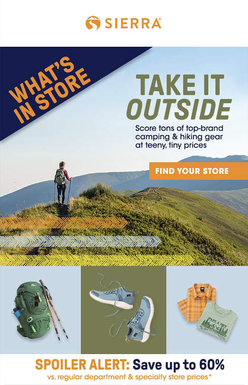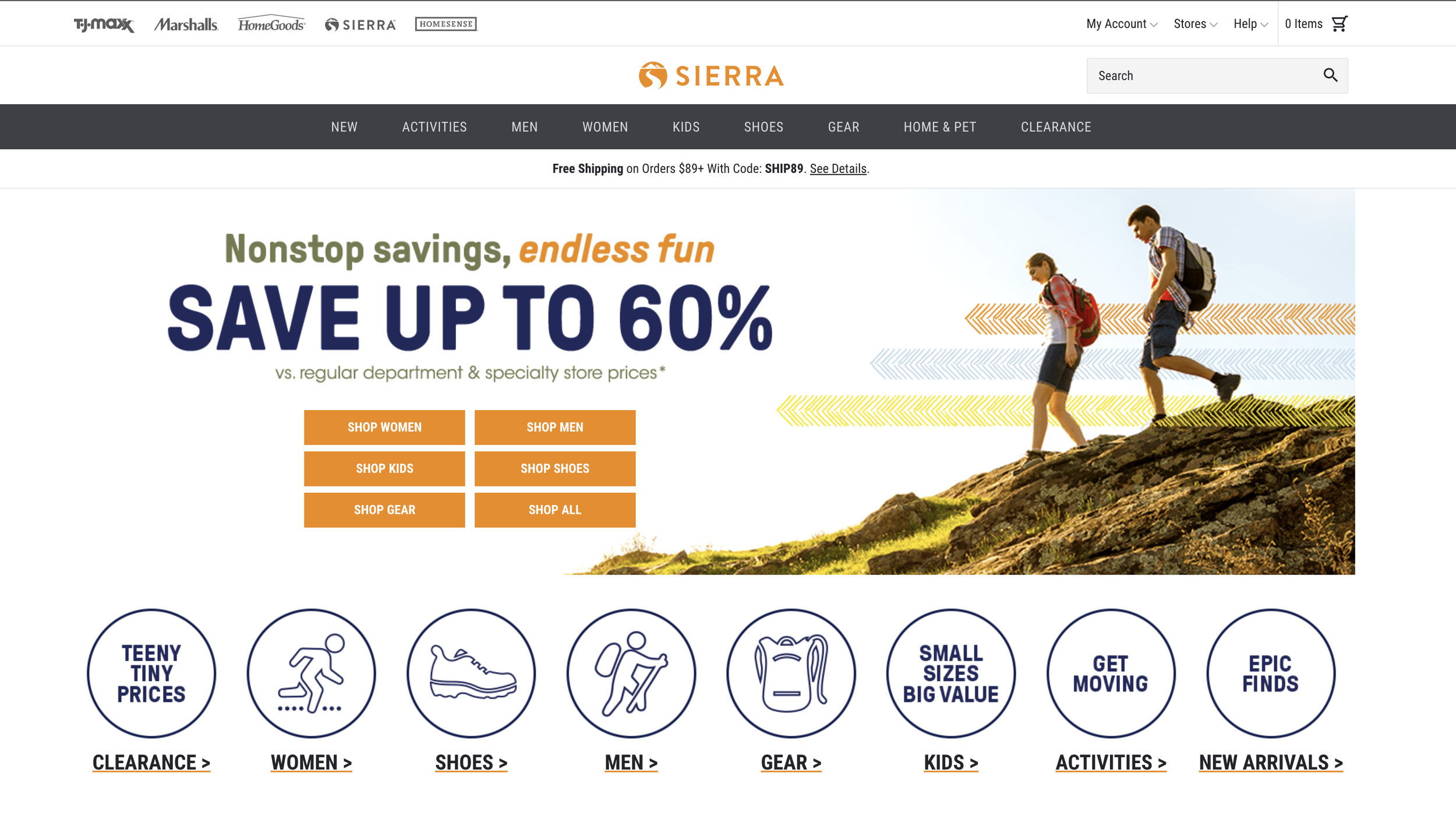 Sierra is an off-price retail brand offering outdoor gear, activewear, and adventure-ready apparel at discounted prices. Part of the TJX Companies, Sierra caters to value-conscious, active individuals and families who love the outdoors but don’t want to overspend.